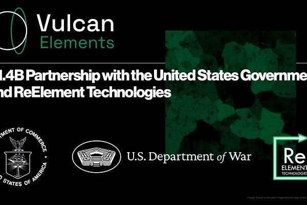 Vulcan Elements' $1.4 Billion Partnership: U.S. Govt & ReElement Technologies
