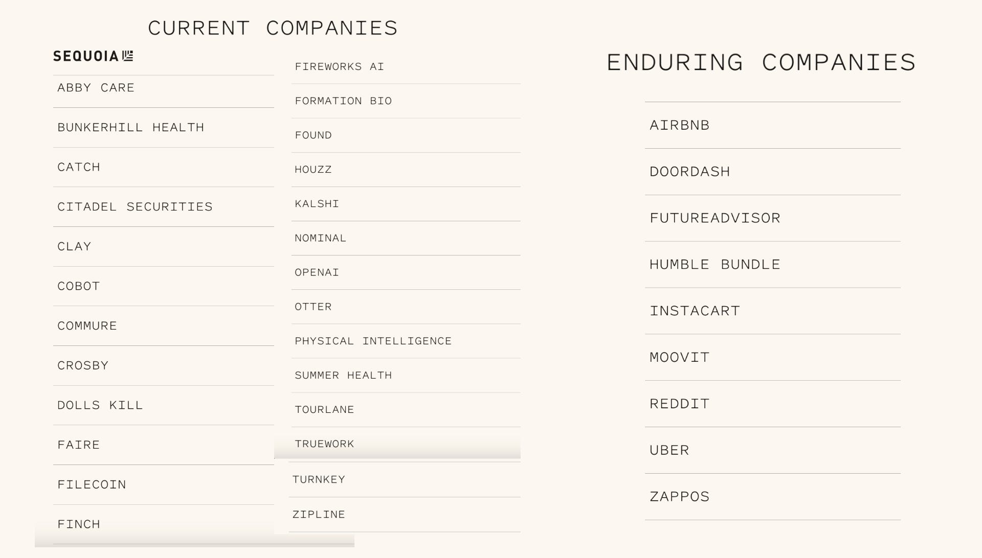 These examples capture Sequoia’s defining belief: the earliest days are when enduring companies take root. Today, as Sequoia launches Seed Fund VI ($200M) and Venture Fund XIX ($750M), the mission remains the same: to help daring founders build legendary companies from idea to IPO and beyond.