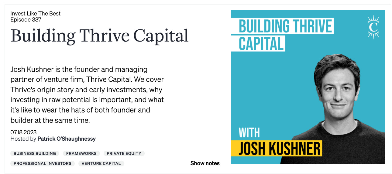 And they have just an incredible amount of humility and self-awareness around the quality of the person that they ultimately want to work with. I think they are extraordinary top-down thinkers in terms of thinking about what the opportunities are that could lead to outsized outcomes. But at the end of the day, if we're not building alongside extraordinary people, nothing is ultimately going to realize its full potential.” - Joshua Kushner