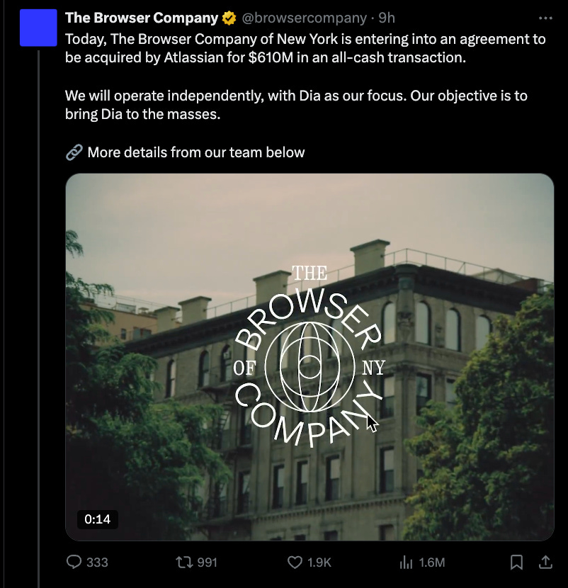 Against this backdrop, Atlassian’s $610 million all-cash purchase of The Browser Company of New York fits squarely into the “AI meets enterprise” wave defining the moment.