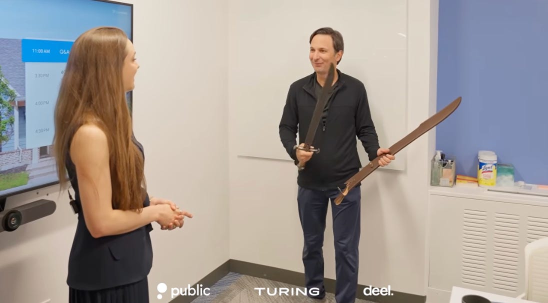(03:42) Why is there a sword in the conference room?