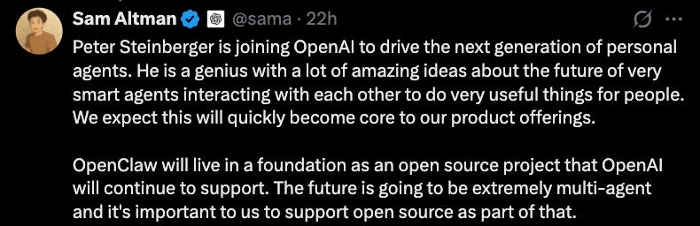 BREAKING: OpenAI Makes Strategic Acquisition: OpenClaw + its Founder Peter Steinberger.