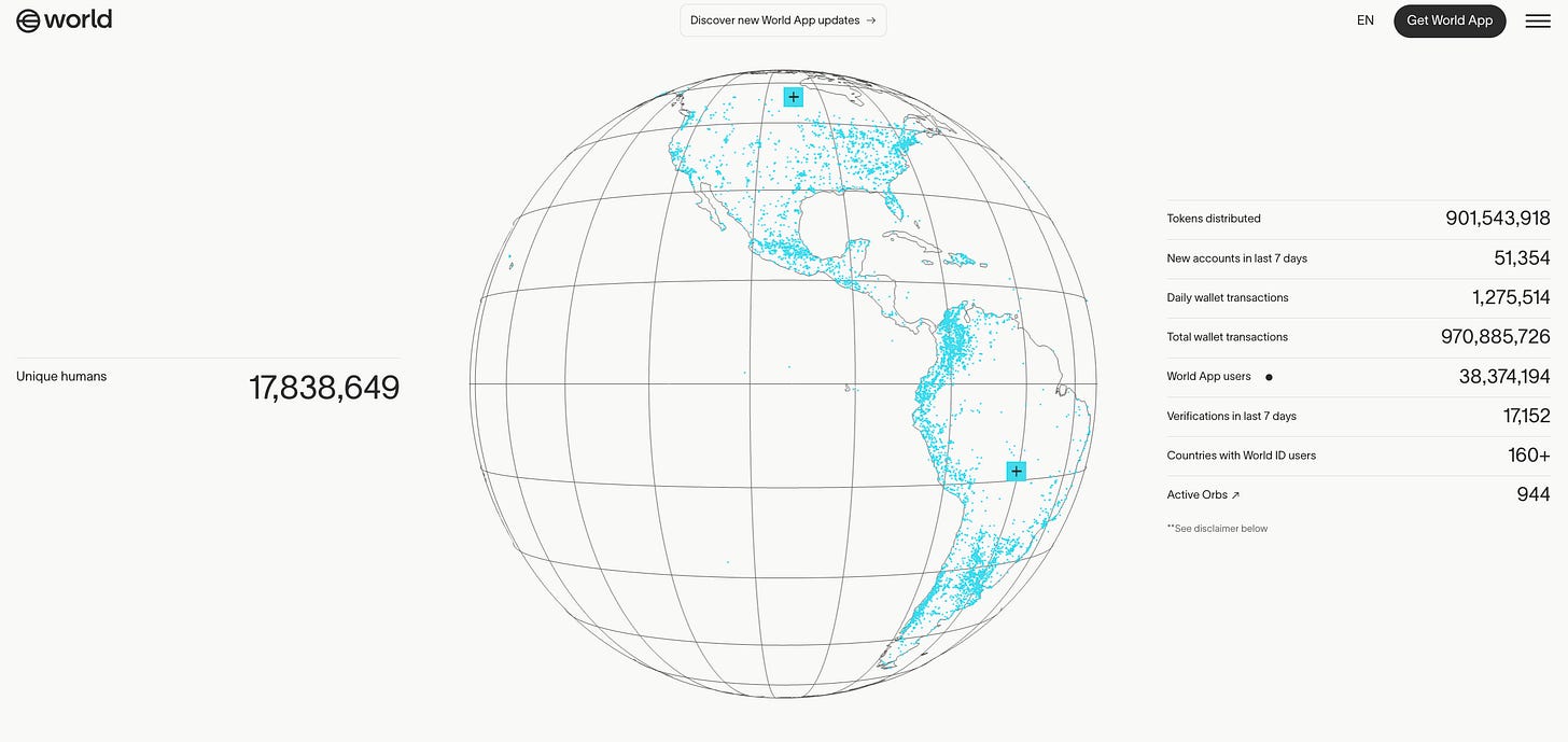 The network reports roughly 38 million users globally, with more than 17.8 million verified humans. The ecosystem spans over 160 countries and has processed hundreds of millions of transactions.
