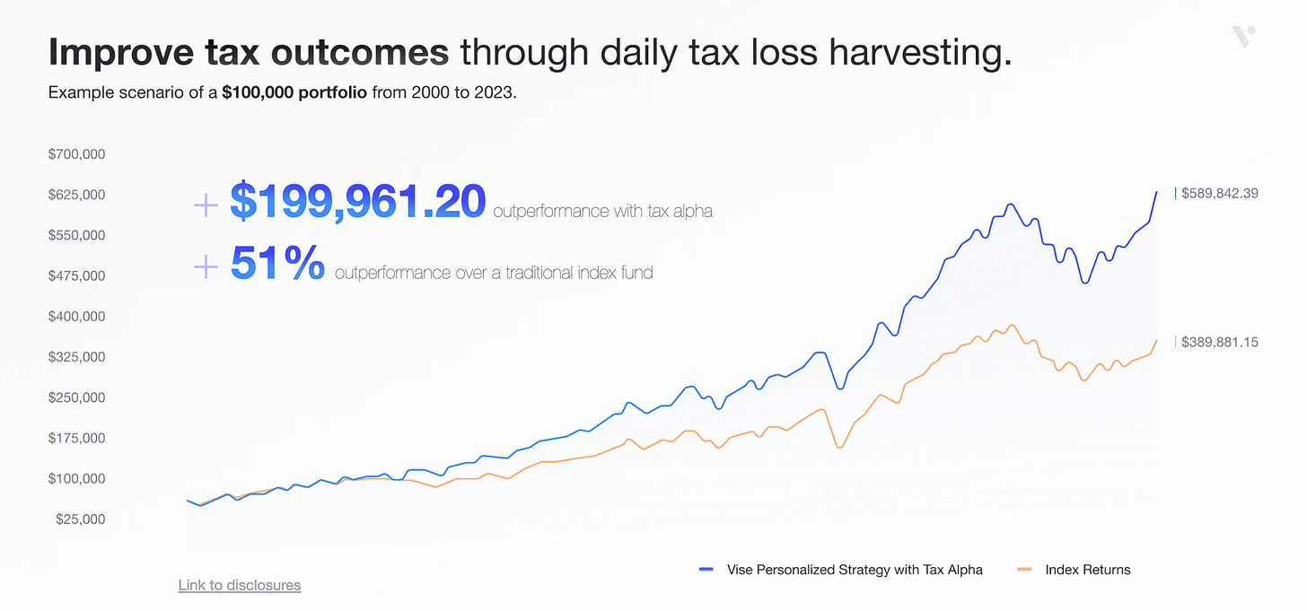 One of Vise’s biggest value drivers? Daily tax-loss harvesting—done at scale through automation.