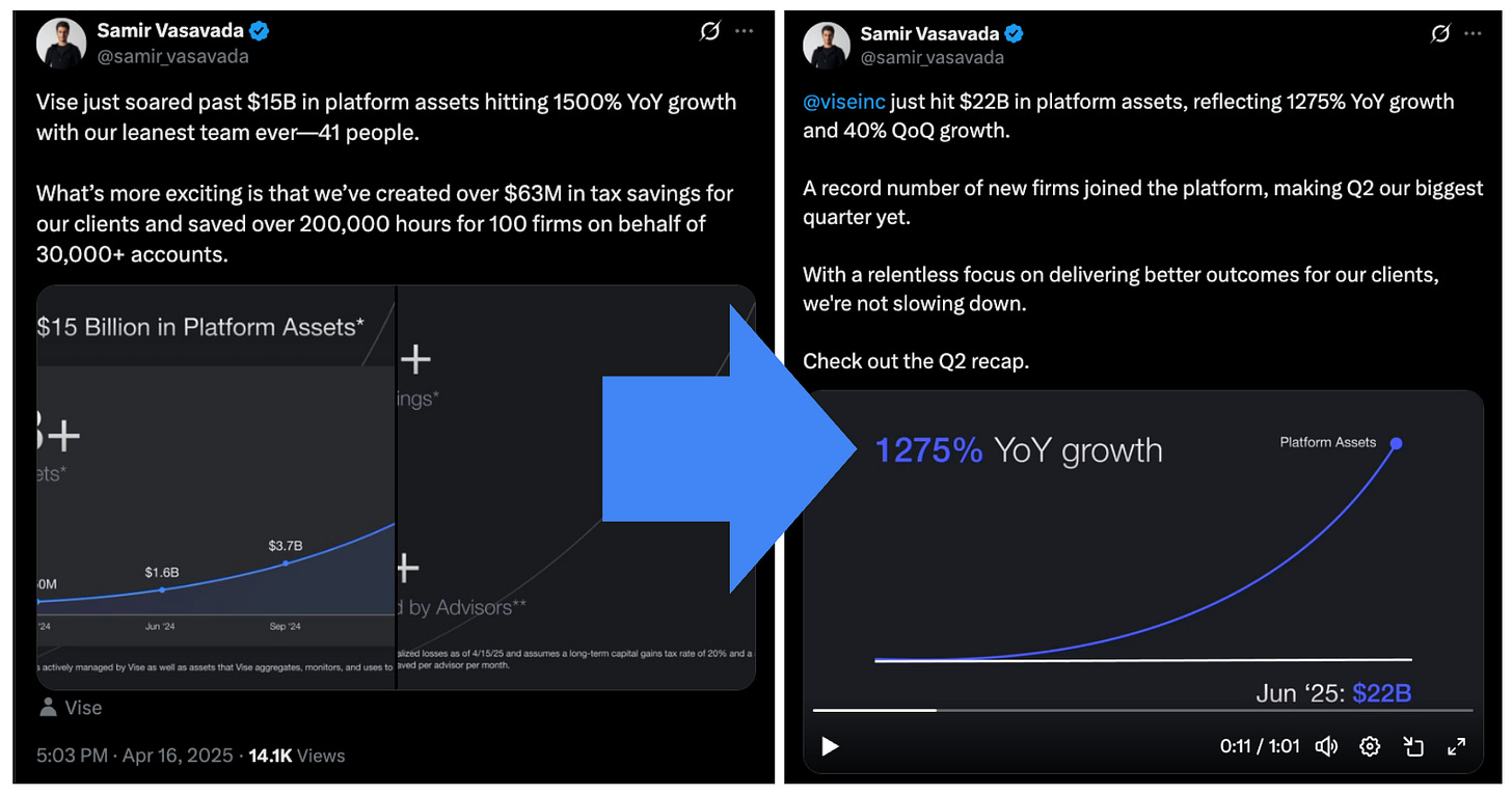 (Since this recording, Vise has grown from $15B to $22B platform assets in just a few months)