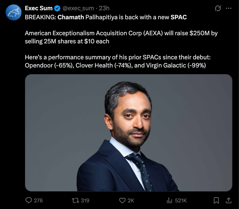 SPAC King is BACK. Chamath Palihapitiya’s Newest SPAC “American Exceptionalism Acquisition Corp” Targets AI & Crypto