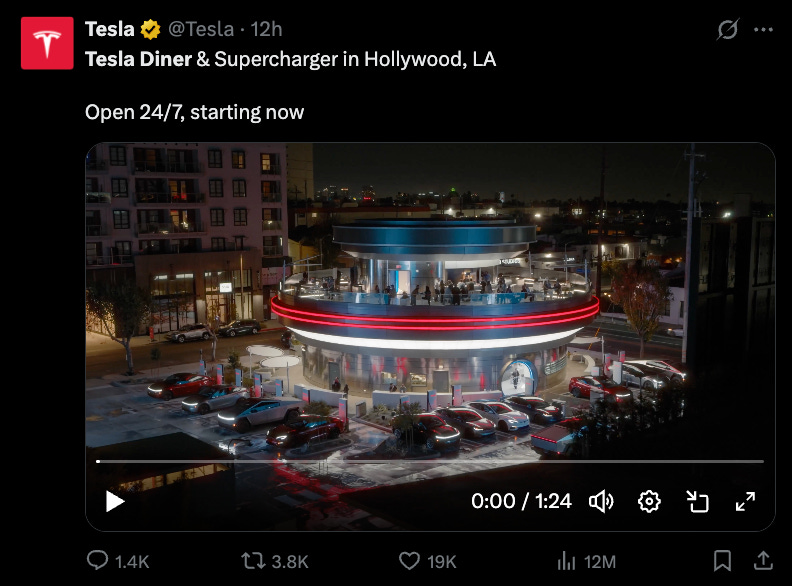 Tesla Diner is retro-futuristic diner & drive-in charging experience with two 45-foot screens all wrapped into one