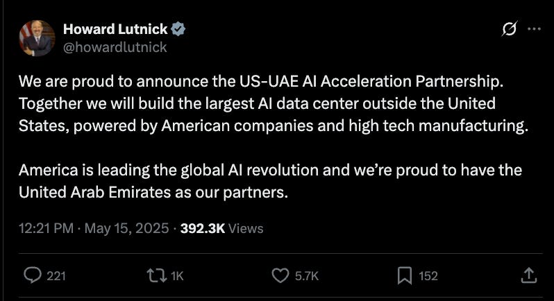 In short, the UAE’s goal is not just acquiring GPUs, they recognize the significance of this opportunity and are positioning themselves as a long-term partner and leader in computational infrastructure, capable of producing and distributing intelligence at scale.