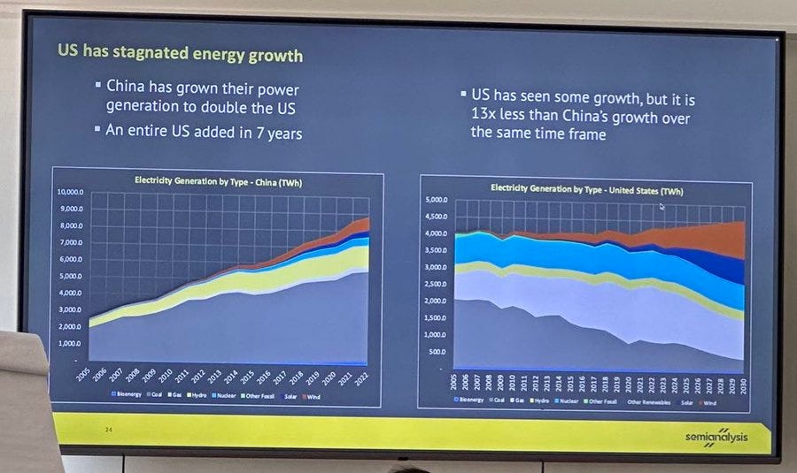 The most dramatic example? China has more than doubled its power generation capacity in just seven years—a pace 13x faster than the U.S.—and is rapidly expanding its domestic chip fabrication capability. With circulating, yet unconfirmed, rumors that China is rolling out a new nuclear reactor every 12 weeks, which may increase to 6 soon. On top of that, if Taiwan’s fabs were disrupted, China could soon surpass the U.S. in advanced wafer capacity, adding to the urgency of reshoring semiconductor production and building allied compute capacity abroad.