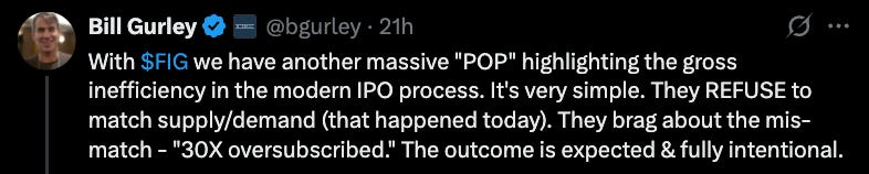 To celebrate, we breakdown $FIG’s big W, alongside Bill Gurley’s highly anticipated sentiment on broken IPO markets.