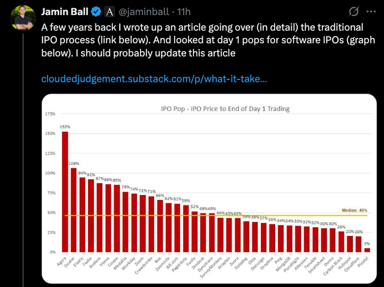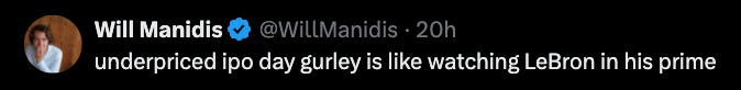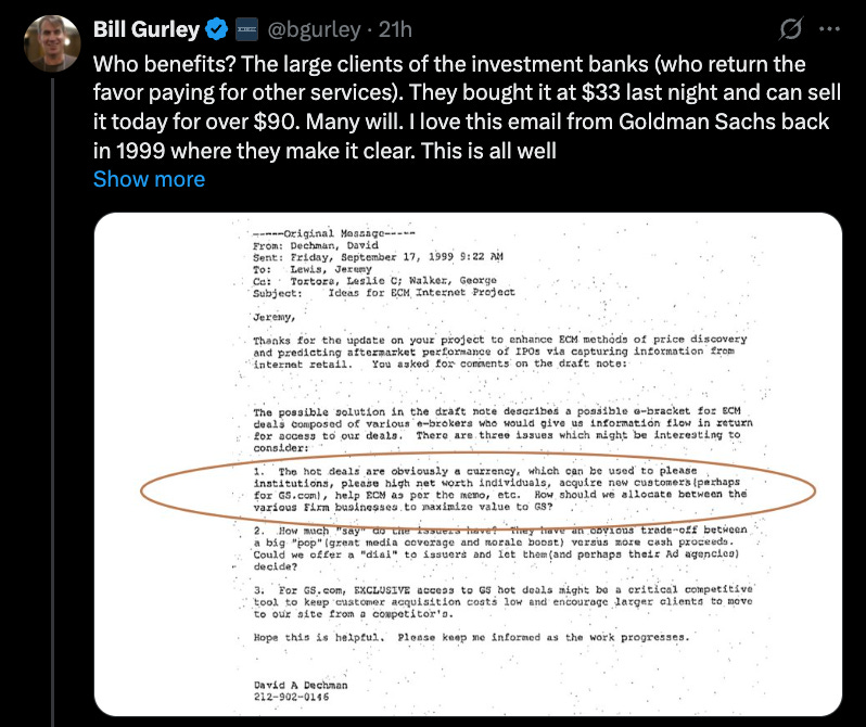 Bill Gurley, Former General Partner of Benchmark, Co-Host of the popular BG2, & long time critic of IPO mispricings.. dutifully chimed in on this one. Someone pls get BG2 to live-stream the next tech IPO. 🙏