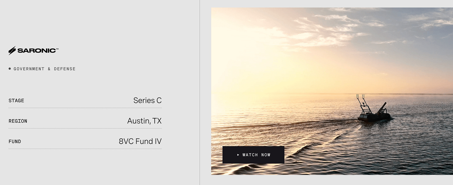 Saronic: Building autonomous naval vessels, reviving U.S. shipbuilding capacity.
