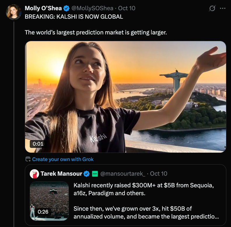 I can barely keep up with how much content & growth we’re reaching, from podcasts, to newsletters, we hit 25M+ views from 3 clips on a secret account we’re running, moderated the Citadel Securities Conference with Kalshi, releasing extra clips on X, merch, & more..