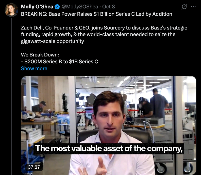 Base Power Raises $1 Billion Series C Led by Addition Zach Dell, CEO | $200M Series B → $1B Series C in <6 months → Listen on X, Spotify, YouTube, Apple