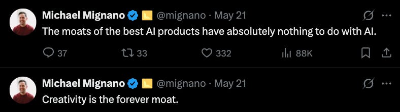 A core theme throughout the discussion is that creativity flows directly into business outcomes, and may be one of the last durable advantages left. As AI lowers the cost of execution and compresses the time from idea to product, Mignano argues that what remains scarce is creative judgment: novel business models, differentiated go-to-market strategies, and strong product taste. Creativity, in this sense, is not about aesthetics alone but about making unconventional bets on how markets will evolve and having the conviction to pursue them before the data is obvious.