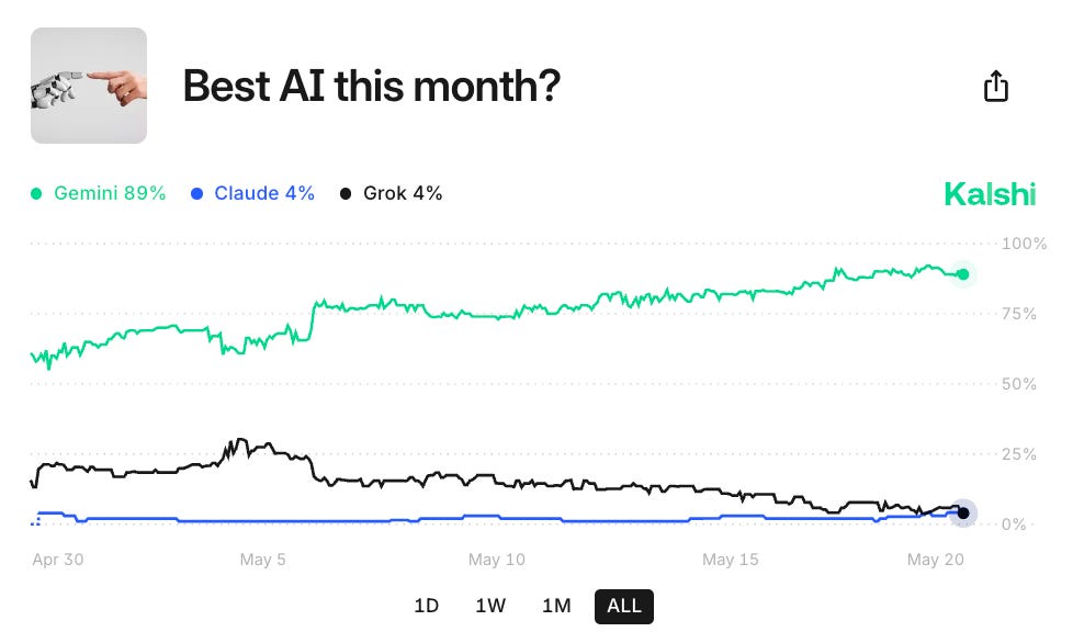 Surprisingly, Gemini is taking the lead on Kalshi for best AI this month, meanwhile Altimeter’s Erik Kriessmann has other thoughts..