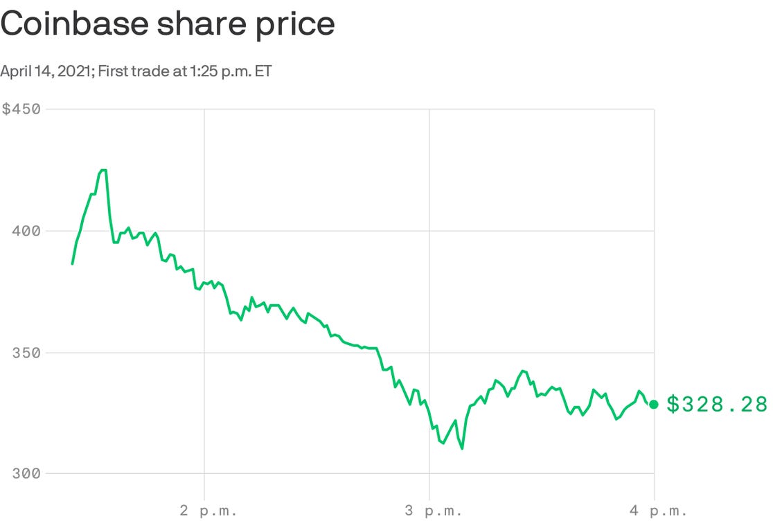 Final numbers on Coinbase’s Choppy First Day at the bottom.