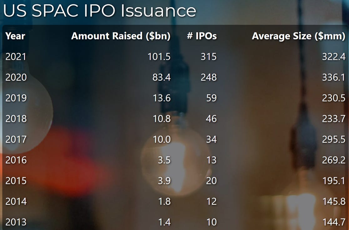 Final numbers on SPACs at the bottom.