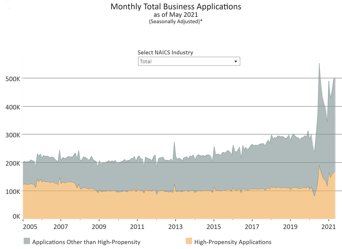 Final numbers on Monthly Total Business Applications and Wage Gap at the bottom.