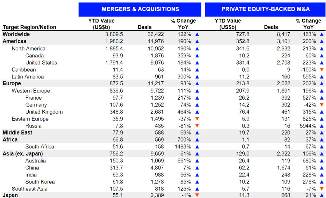 Refintitiv Deals Intelligence. Data through Aug. 19, 2021.