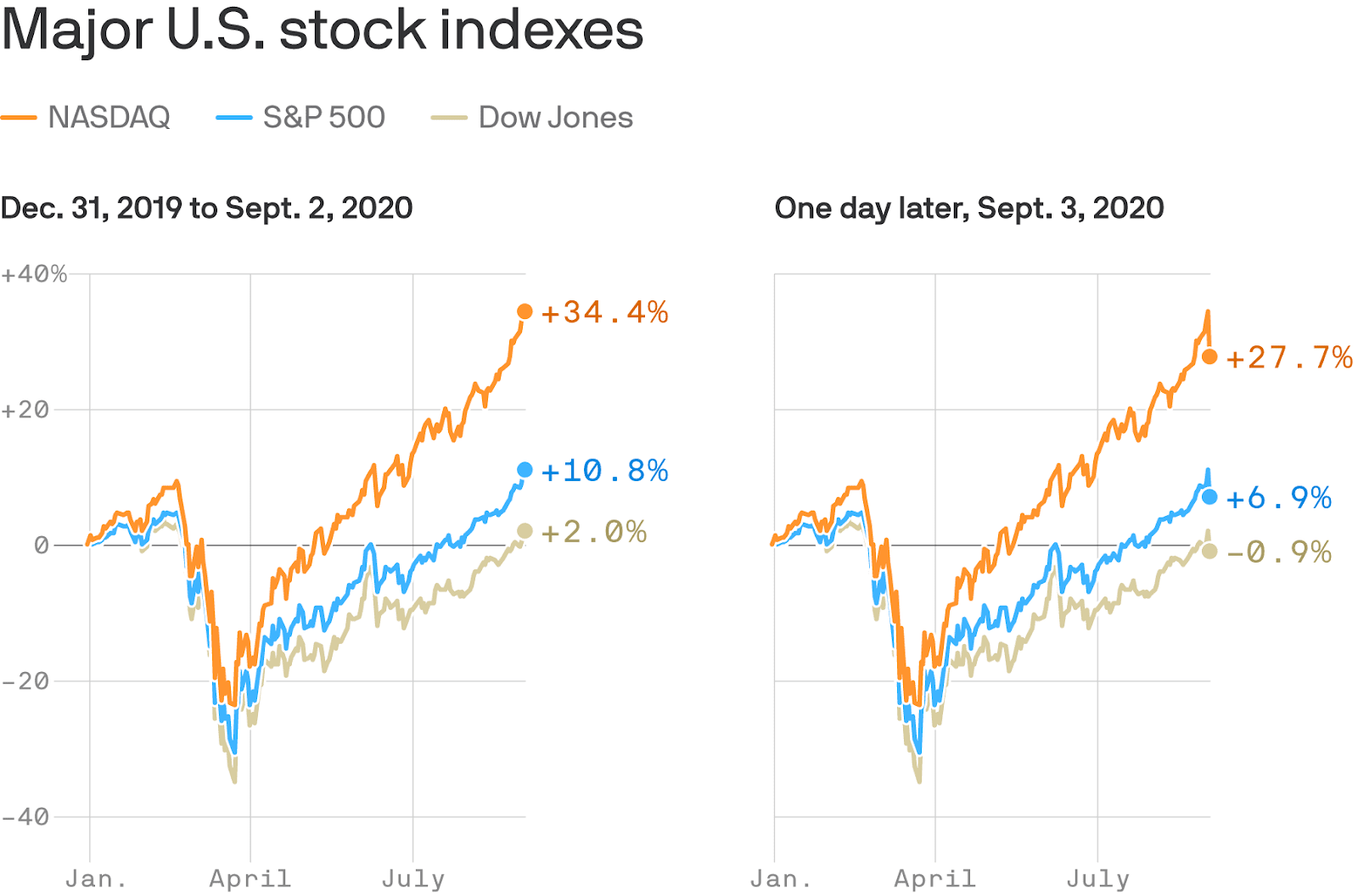 Final numbers on Changes in Major Stock Indexes at the bottom.